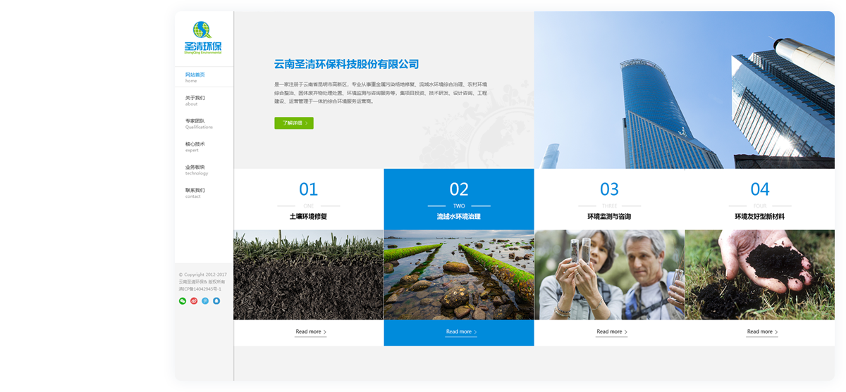 圣清环保股份有限公司,下辖圣清环保设计研究院、圣清环境监测公司、圣清环境新材料公司等全资子公司,以及北京、湖南、陕西、海南、浙江等地控股分子公司,是国家级高新技术企业。自2014年创建以来,公司经过几年稳健和快速的开展,已经成长为一家集团型生态环保全领域全产业链综合服务给予商。公司资质齐全,管理体系健全,集中在“水、土、固”三大领域,为客户给予全方位的“投资、研发、监测、规划、设计、工程、运营”等综合环境服务,承担实施了多个国家级示范项目,环保业务辐射全国。