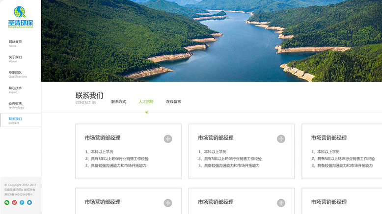 网站设计总体的色调延用VI运用标准色,banner以“天人合一,创建圣洁清新之地”为使命,打造“自然保护区生态恢复”为主题,留住用户第一印象,增强品牌形象,另外导航栏在左侧显示,力求在视觉上打破传统的方式,给人眼前一亮的感觉。